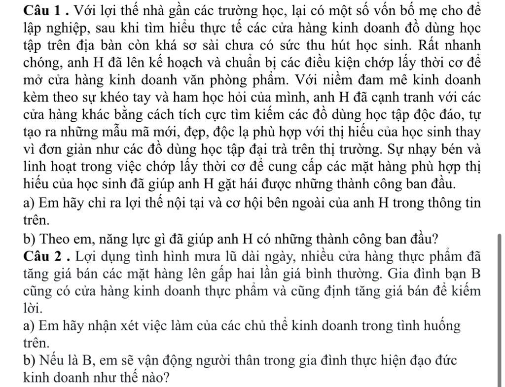 -Phân tích về trách nhiệm đạo đức: Kinh doanh cần có đạo đức, không nên lợi dụng thiên tai để trục lợi.