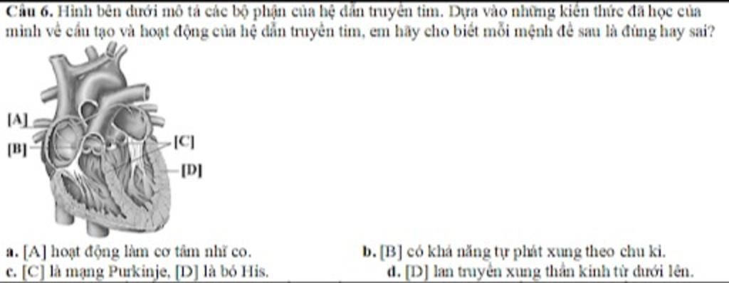 b.sai. (Nút xoang nhĩ mới là cơ quan có khả năng tự phát xung theo chu kì)