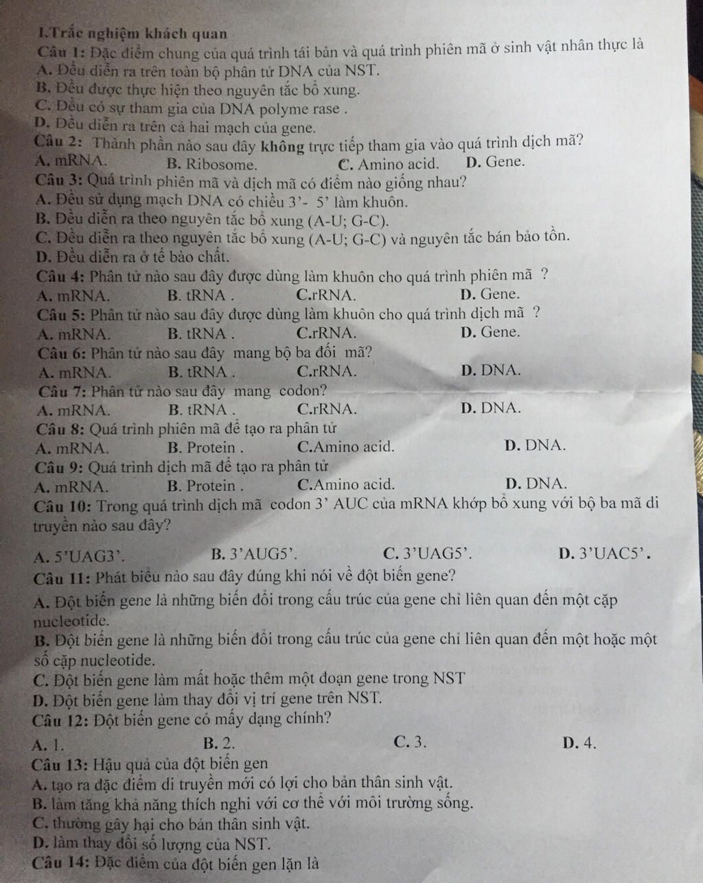 - Quá trình dịch mã (tổng hợp protein) diễn ra với sự tham gia trực tiếp của mRNA (mang mã di truyền), ribosome (nơi tổng hợp), và amino acid (nguyên liệu).Gen (DNA) là khuôn mẫu cho quá trình phiên mã tạo ra mRNA, nhưng không trực tiếp tham gia vào quá trình dịch mã.