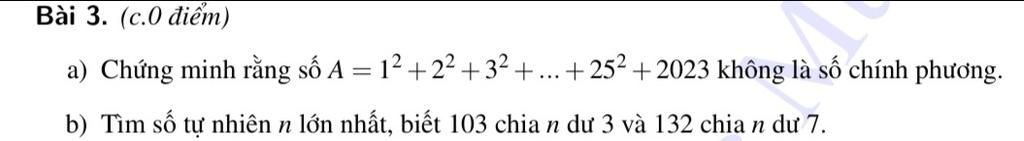 a. số A không là số chính phươgb. số tự nhiên n lớn nhất là 25