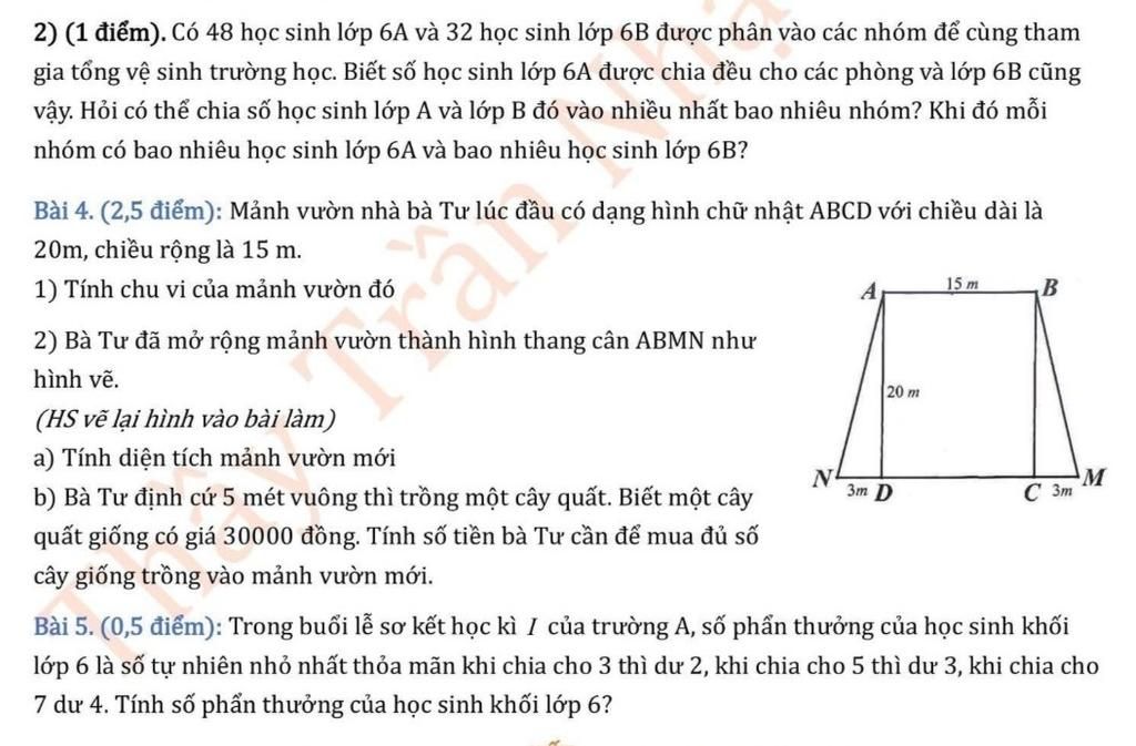 Vậy mỗi nhóm có 3 học sinh lớp 6A và 2 học sinh lớp 6B.