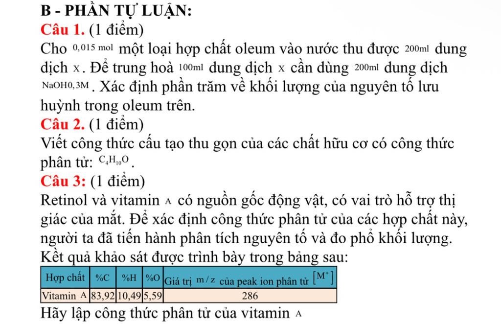 NaOH0,3M . Xác định phần trăm về khối lượng của nguyên tố lưu