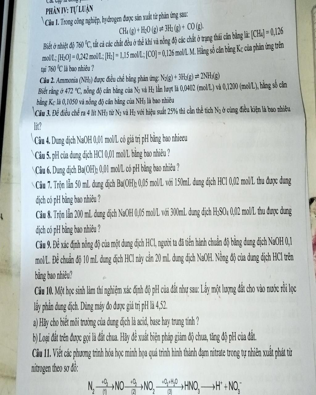 Biết ở nhiệt độ 760 °C, tất cả chất đều ở thể khí và nồng độ các chất ở trạng thái cân bằng là: [CH]=0,126