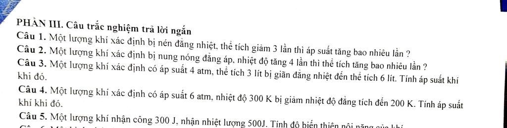quá trình đẳng nhiệt ⇒ thế tích tỉ lệ nghịch với áp suất ⇒ thể tích giảm 3 lần thì áp suất tăng 3 lần