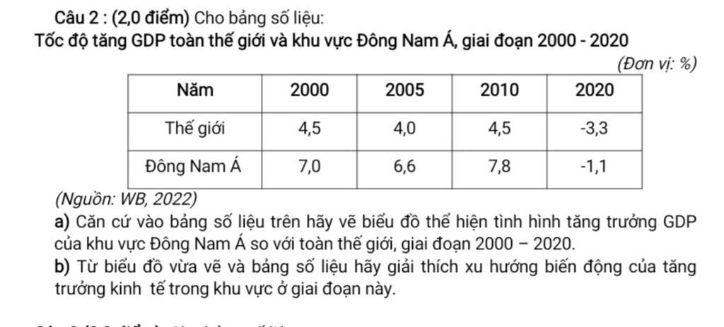 Tốc độ tăng GDP toàn thế giới và khu vực Đông Nam Á, giai đoạn 2000 - 2020