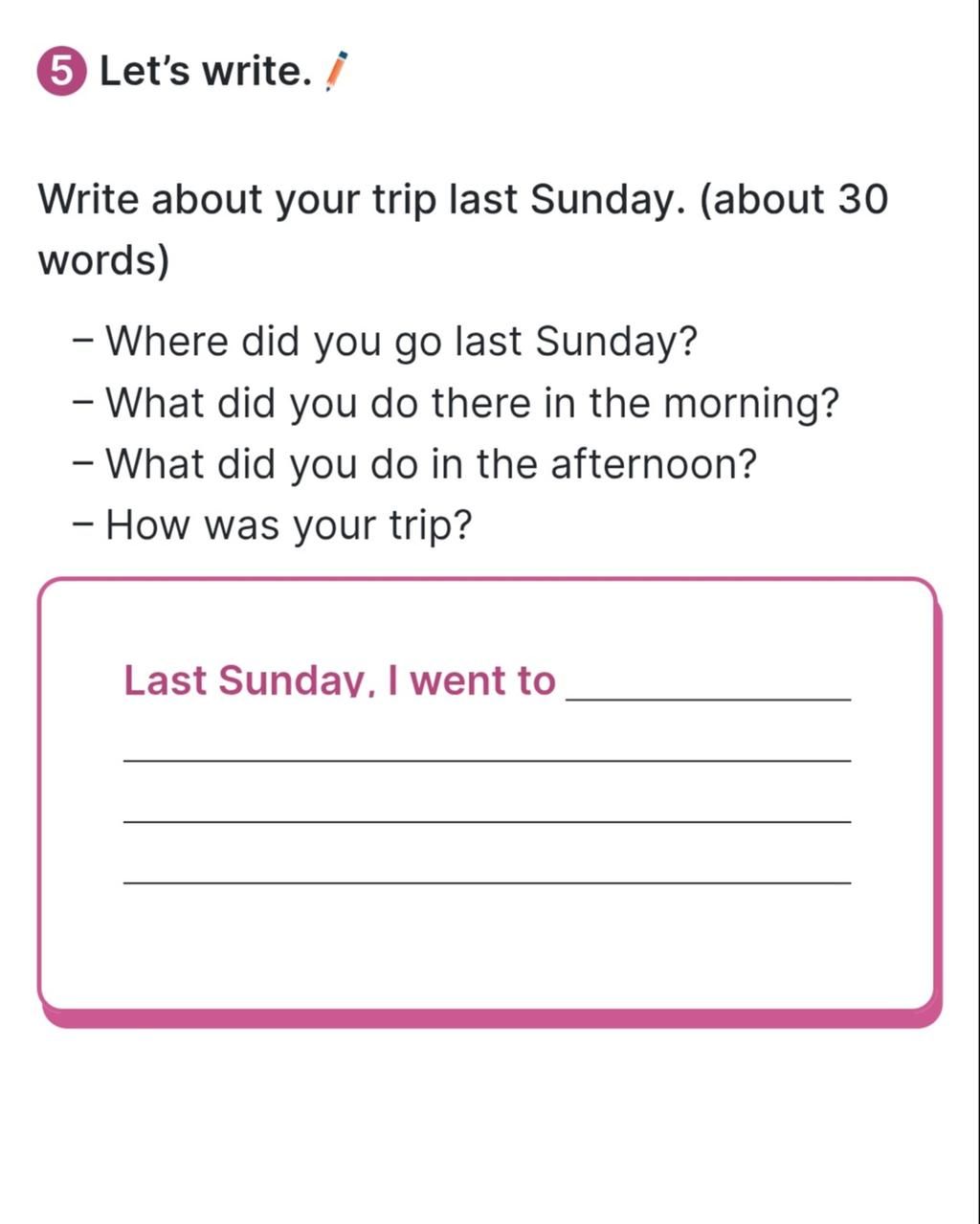 Last Sunday , I went to the park . In the morning , I played on the slides and the swings . In the afternoon, I ate ice cream and watched my friends play soccer . I had a lot ò fun on that trip .