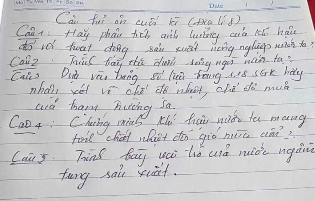 +Tính chất gió mùa: Nước ta nằm trong phạm vi hoạt động của Tín phong bán cầu Bắc và chịu ảnh hưởng mạnh mẽ của hai mùa gió chính: gió mùa Đông Bắc (mùa đông lạnh ở miền Bắc) và gió mùa Tây Nam (mùa hè nóng ẩm trên cả nước).
