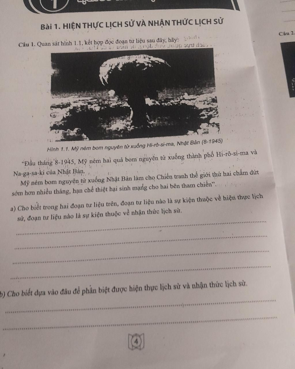 Bài 1. HIỆN THỰC LỊCH SỬ VÀ NHẬN THỨC LỊCH SỬ