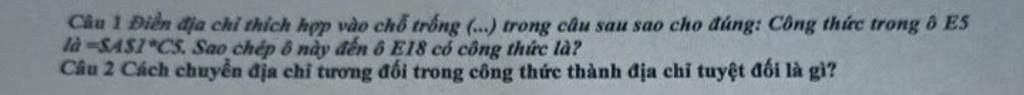 - $A$1 là địa chỉ tuyệt đối → sao chép xuống ko đổi.