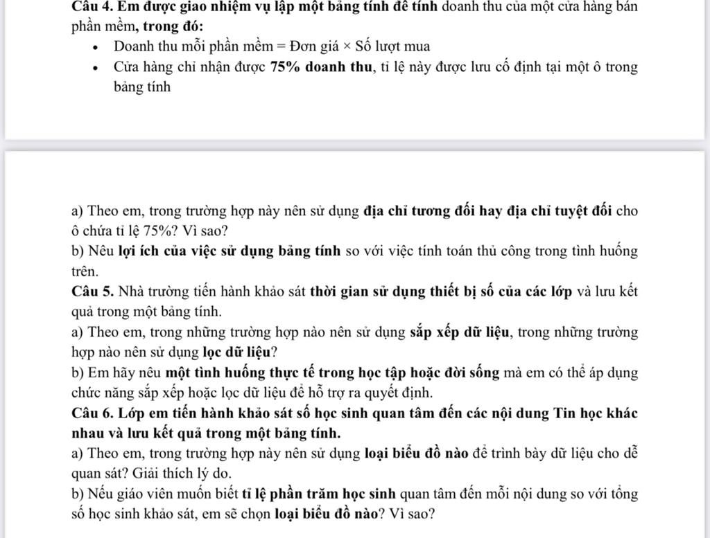 Câu 4. Em được giao nhiệm vụ lập một bảng tính để tính doanh thu của một cửa hàng bán