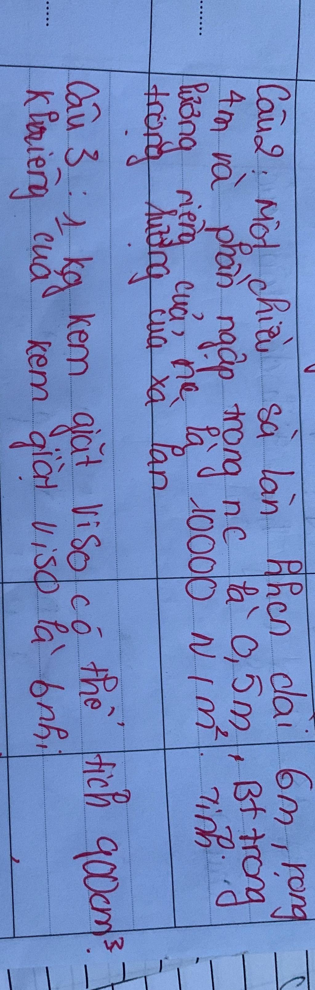 Phần diện tích bị ngập là : 4 x 6 x 0.5 =12(m3)