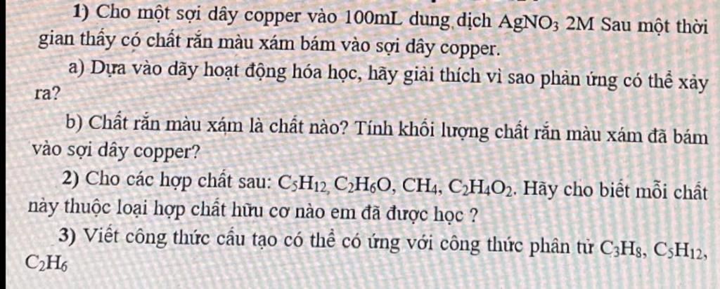 1) Cho một sợi dây copper vào 100mL dung dịch AgNO3 2M Sau một thời