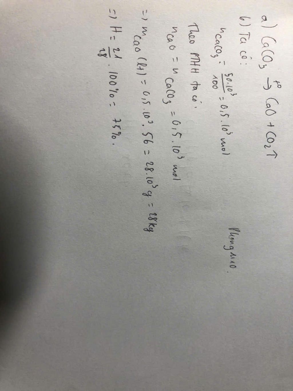Câu 6. Một lò nung vôi sử dụng 50 kg CaCO₃. Thực tế thu được 21kg CaO và có khí CO2 bay ra.