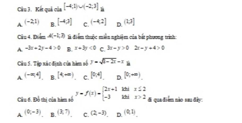 Thay lần lượt $A(-1; 3)$ vào các bất phương trình, ta có: