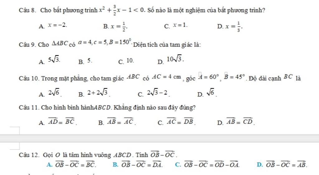 Ta có: $\overrightarrow{OB} - \overrightarrow{OC} = \overrightarrow{OB} + \overrightarrow{CO} = \overrightarrow{CB}$