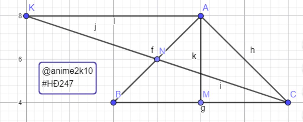 Xét `triangleABC` có `AM` là đường trung tuyến