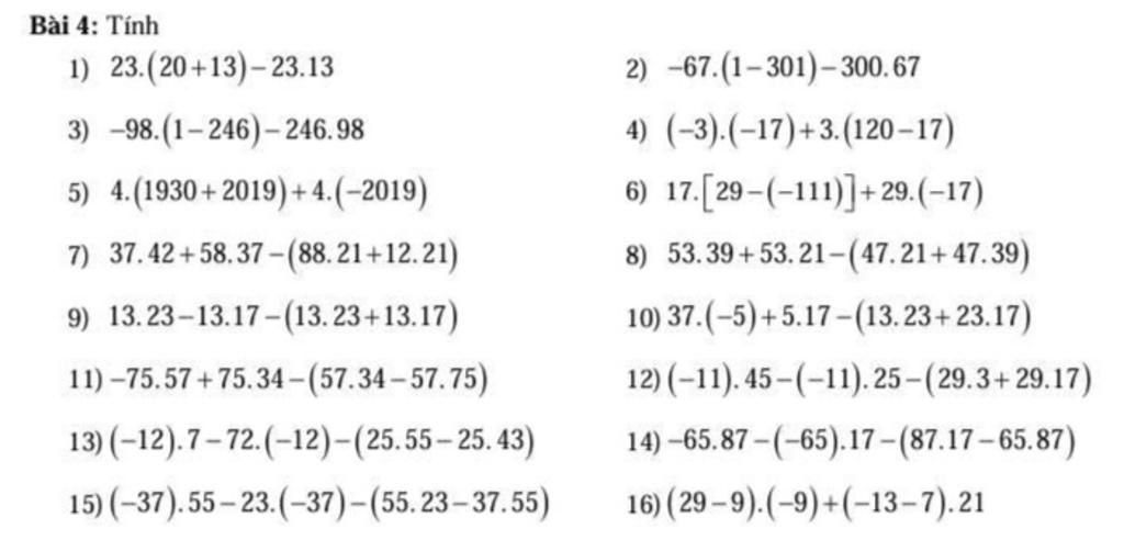 Bài 4: Tính