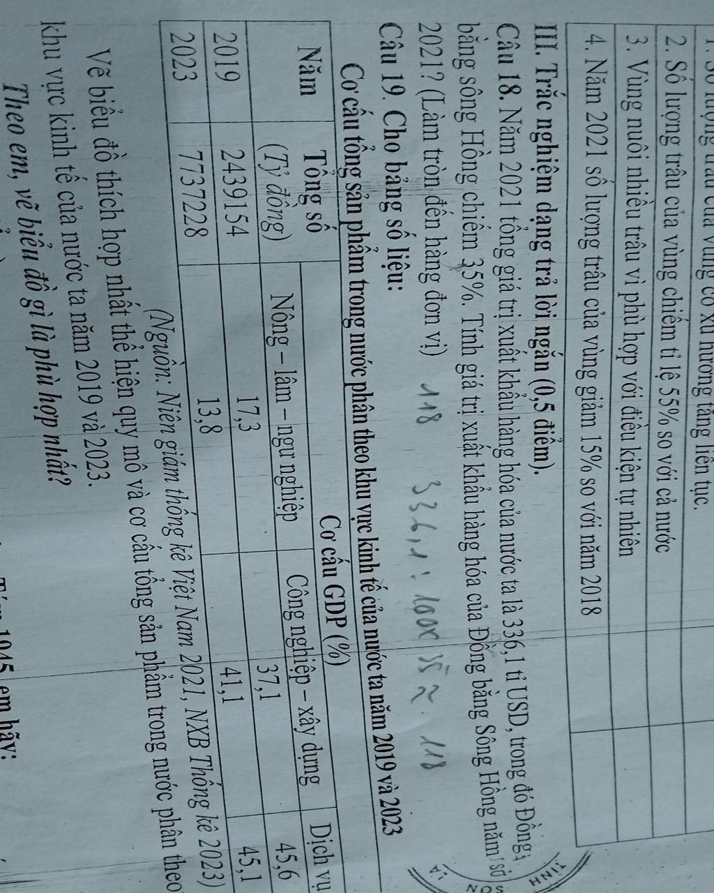 4. Năm 2021 số lượng trâu của vùng giảm 15% so với năm 2018