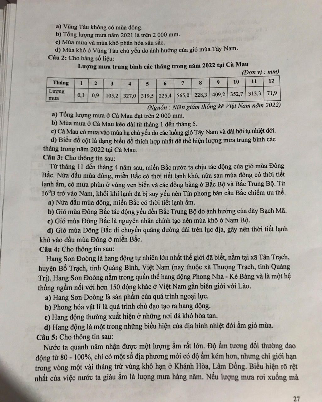 d) Mùa khô ở Vũng Tàu chủ yếu do ảnh hưởng của gió mùa Tây Nam.