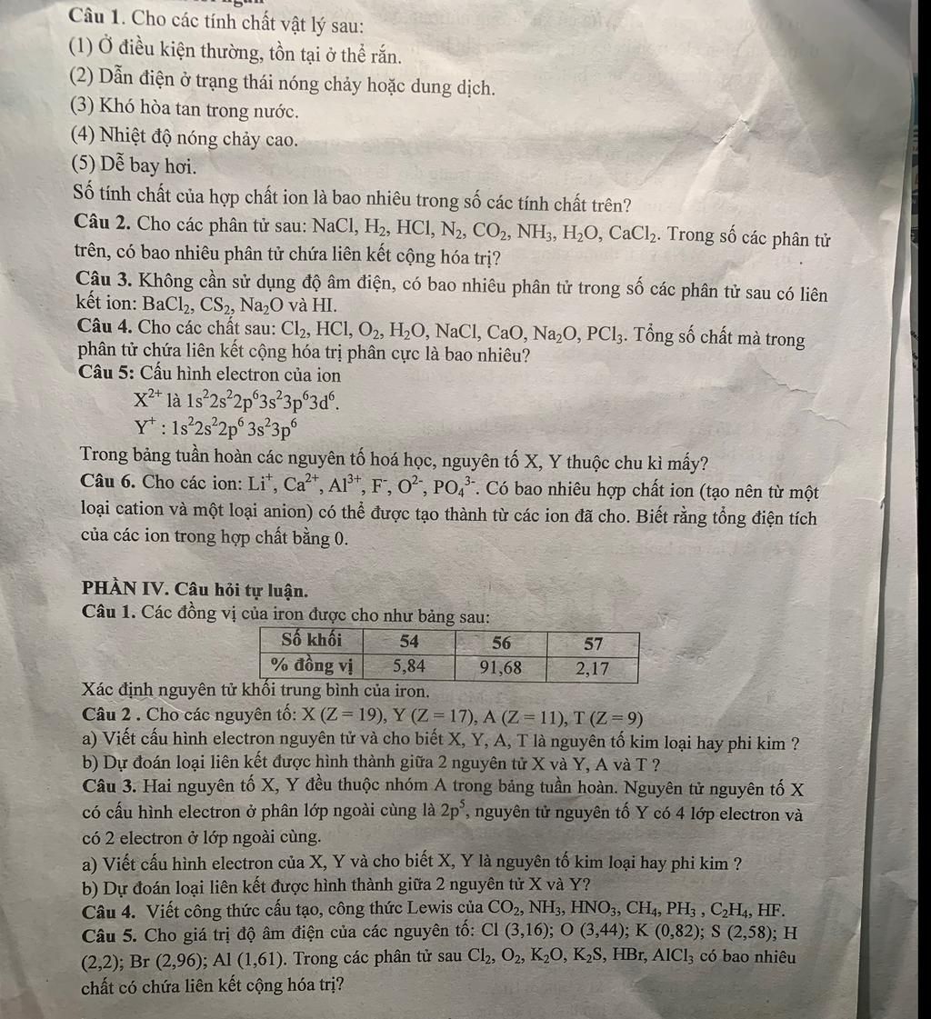Y (Z=17): 1s² 2s² 2p⁶ 3s² 3p⁵ → phi kim.