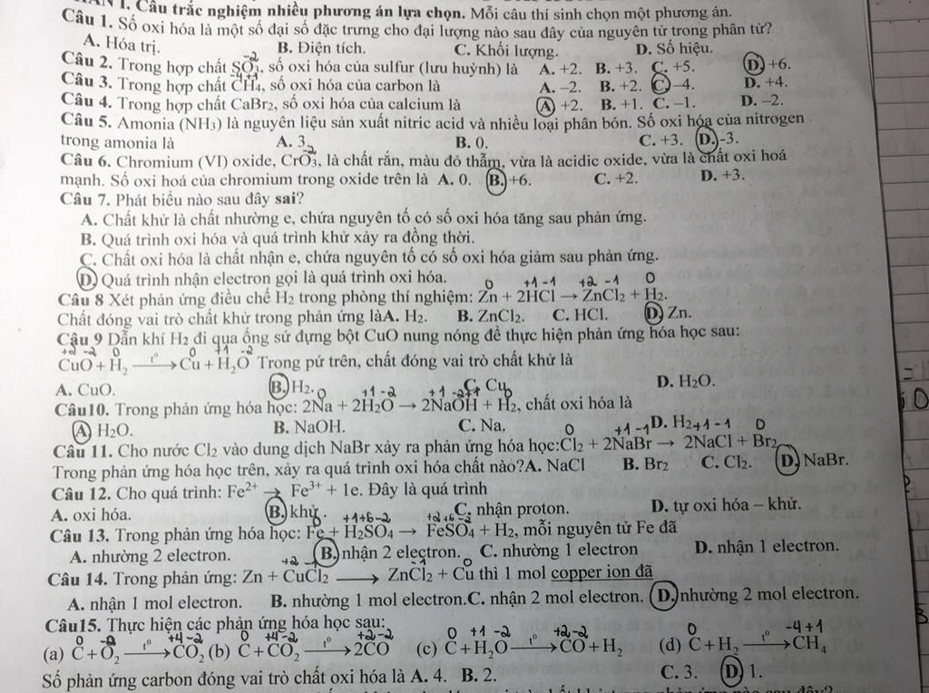 Câu 3. Trong hợp chất chia, số oxi hóa ...