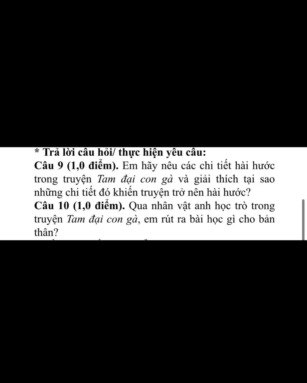 Câu 9 (1,0 điểm). Em hãy nêu các chi tiết hài hước