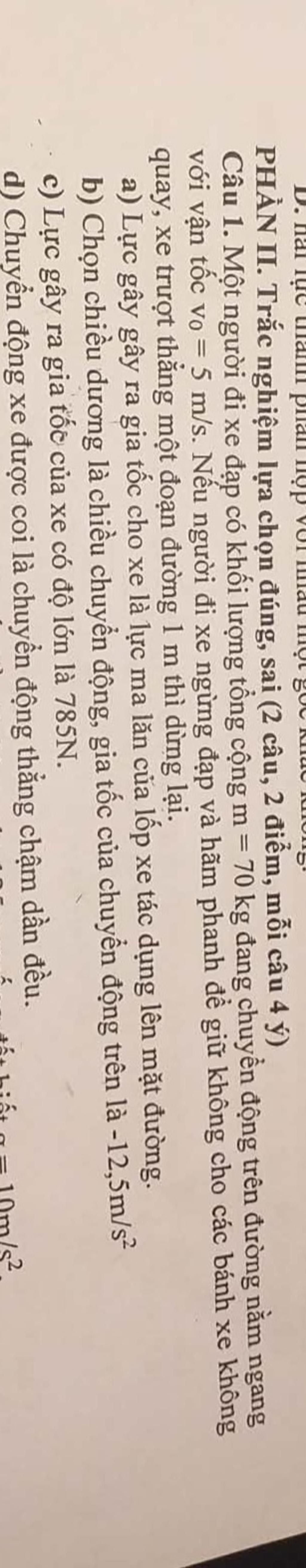 - Lực ma lăn giữa lốp xe và mặt đường gây ra sự thay đổi vận tốc -> xe giảm tốc (chuyển động chậm dần đều) rồi dừng lại.