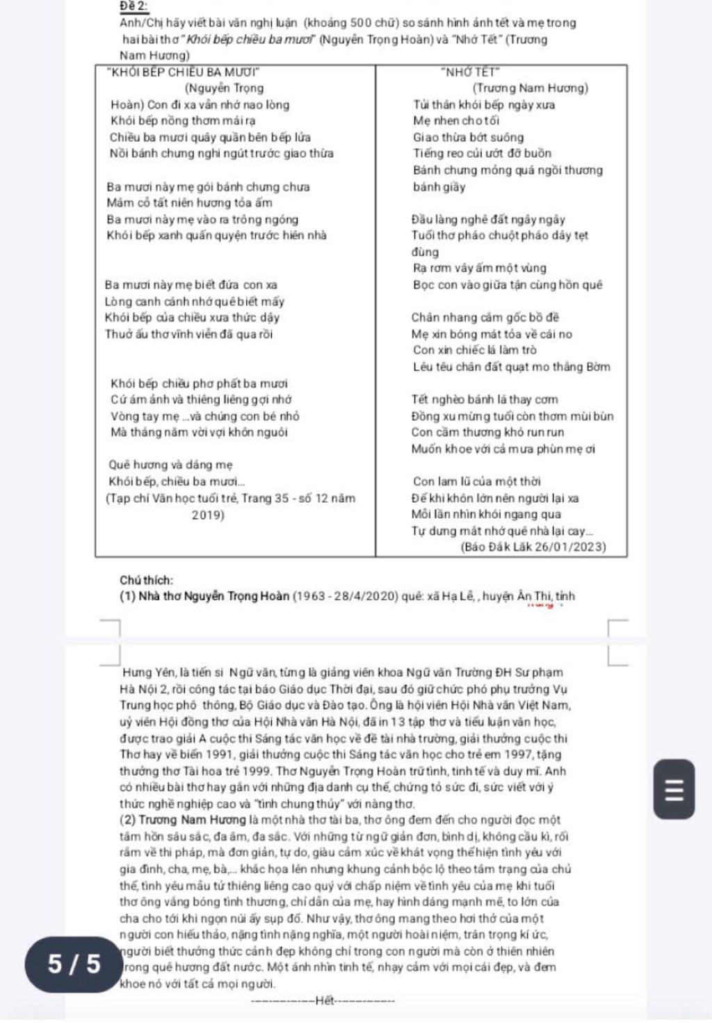 → Từ đó, giới thiệu hai tác phẩm thơ được lựa chọn để so sánh.