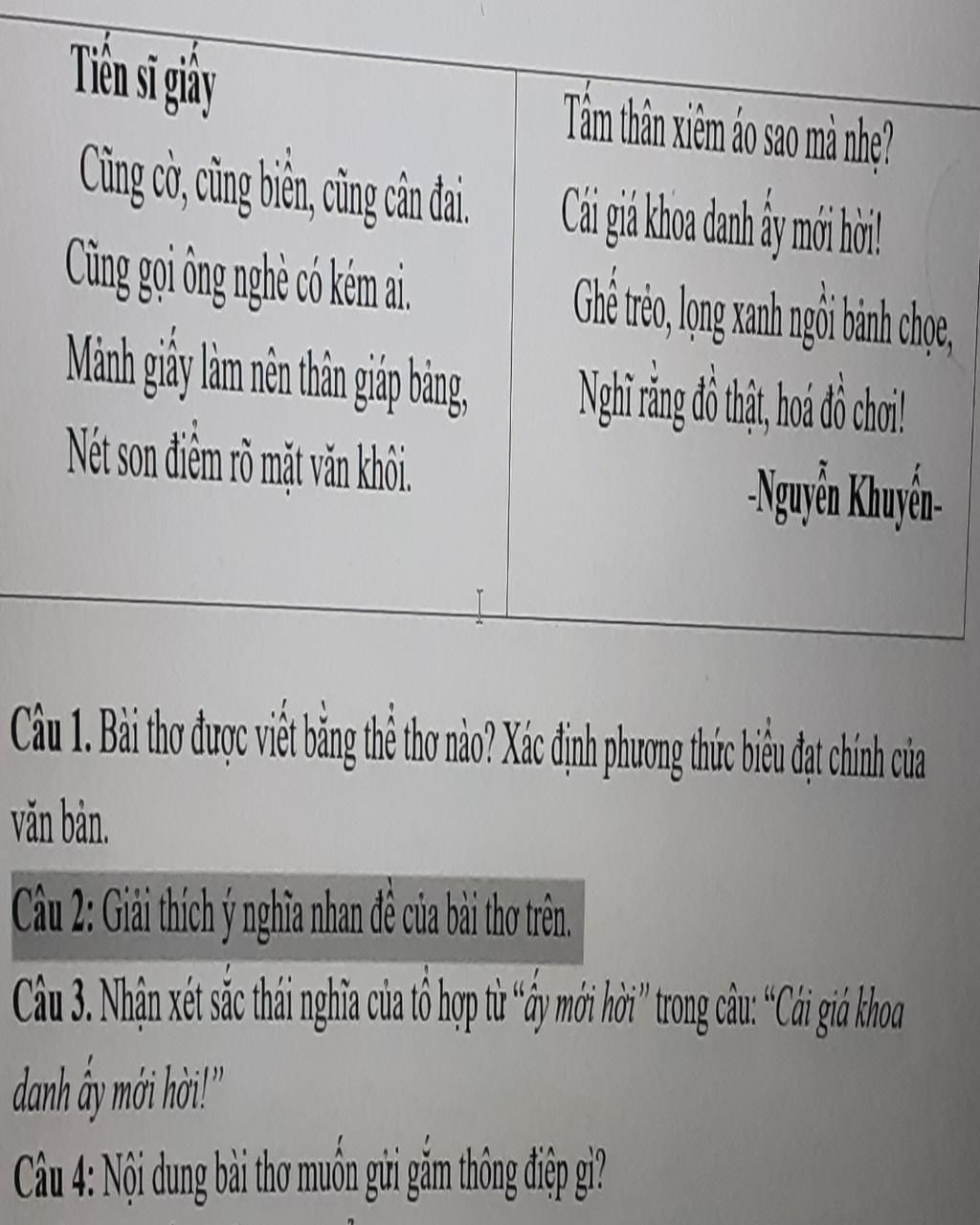 Câu 2: Nhan đề của bài thơ có ý nghĩa:
