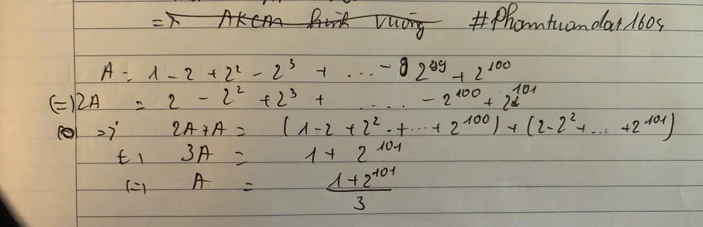 A = 1 - 2 + 2 mũ 2 - 2 mũ 3 + .. - 2 mũ 99 + 2 mũ 100