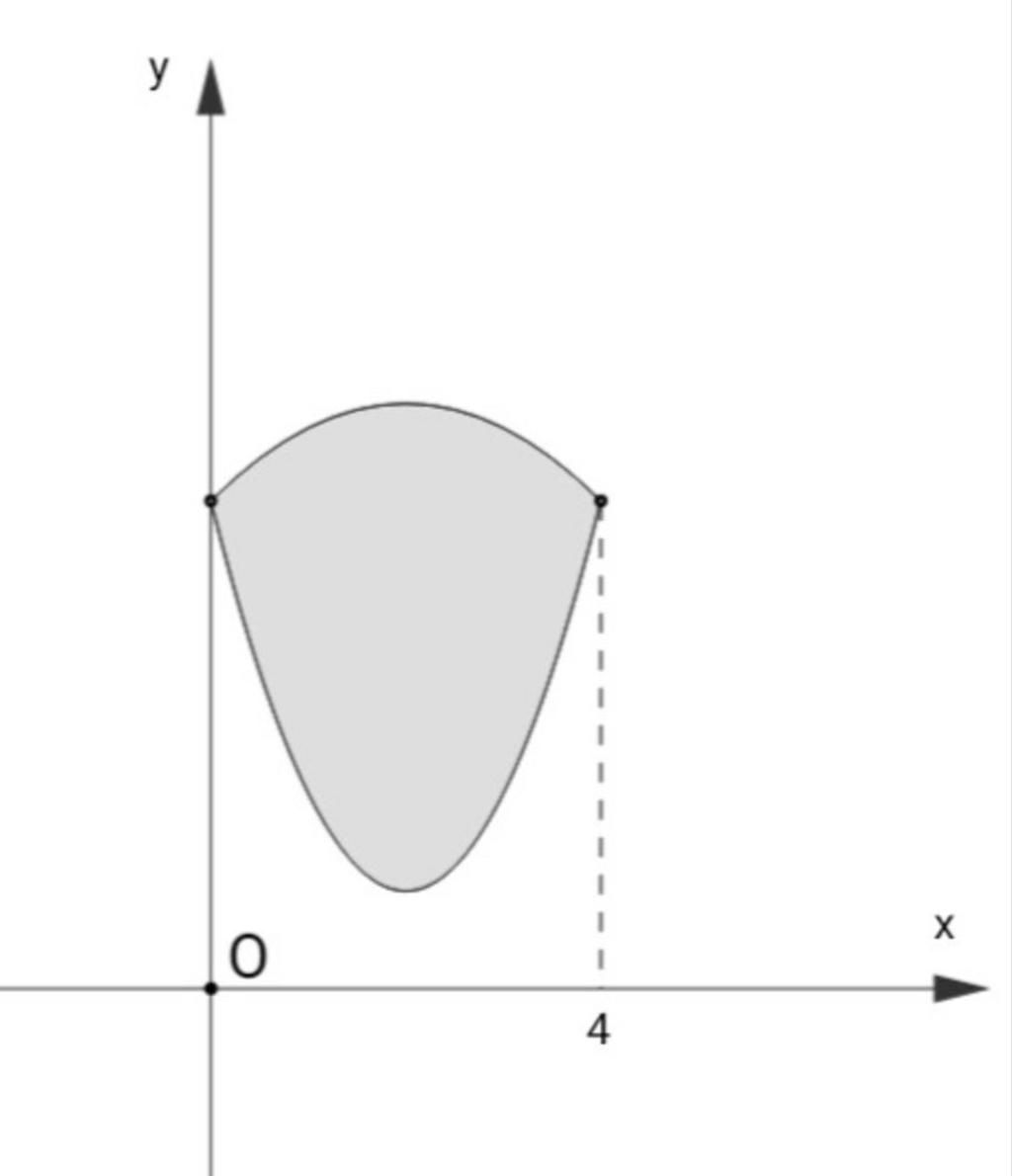 $\Rightarrow \textbf{S} = \displaystyle \int_0^4 (5x - 1,25x^2)dx = \left.\left(\dfrac{5}{2}x^2 - \dfrac{5}{12}x^3\right)\right|^4_0 = \dfrac{40}{3}$
