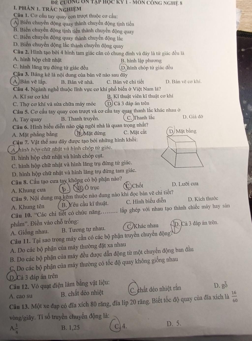 Câu 7 A. Hình hộp chữ nhật và hình chóp tứ giác