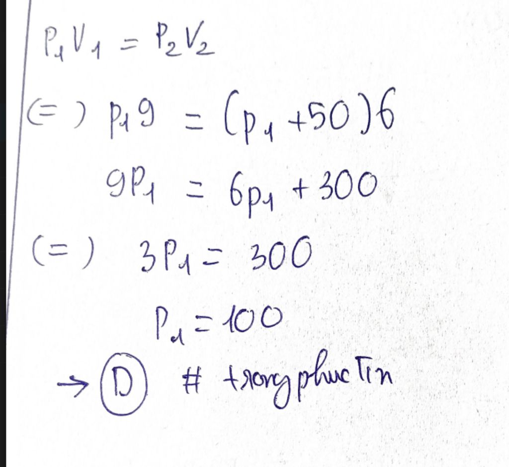 Nén khí đẳng nhiệt từ thể tích 9 lít lên thể tích 6 lít thì áp suất tăng một lượng ∆p=50kPa. Áp suất ban đầu của khí đó là: