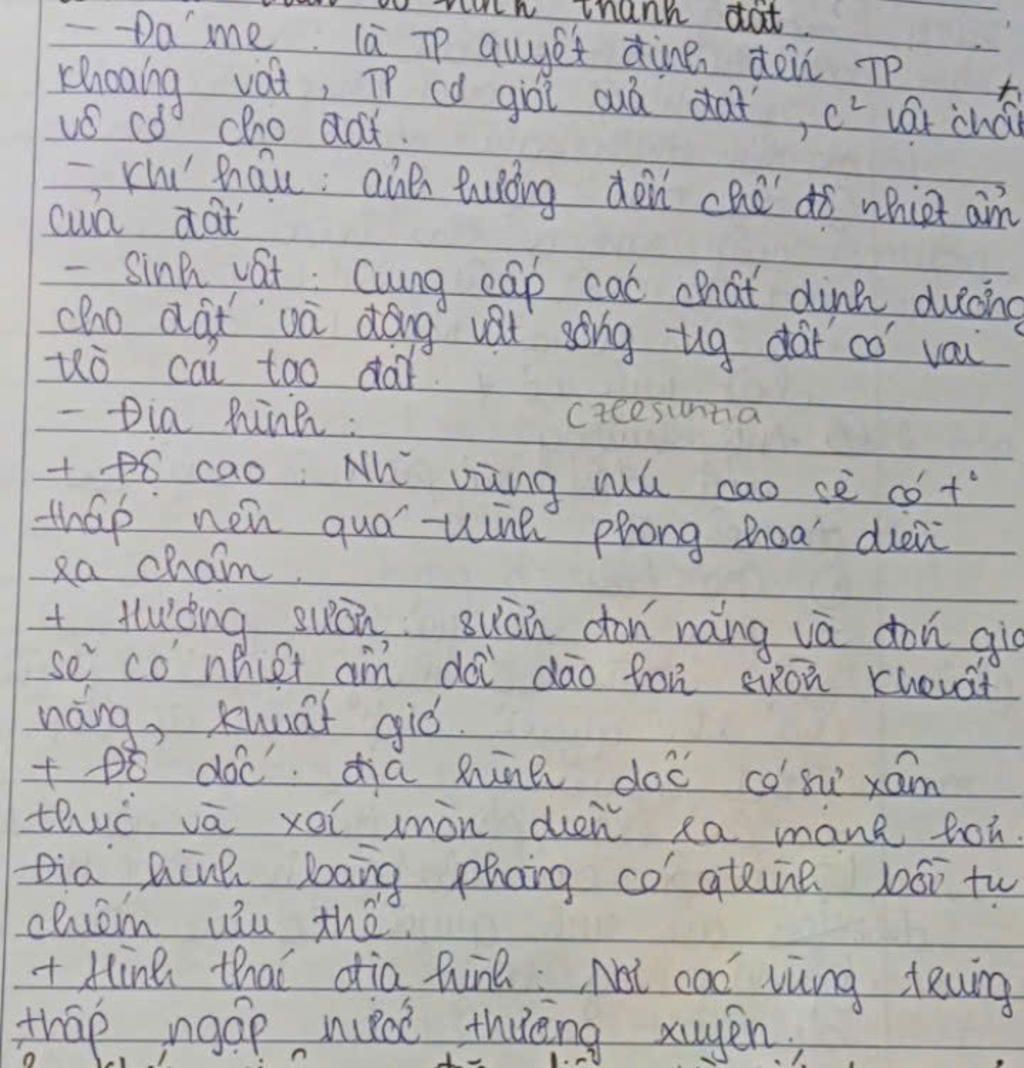 `+` Địa hình ảnh hưởng độ dày, sự rửa trôi đất.