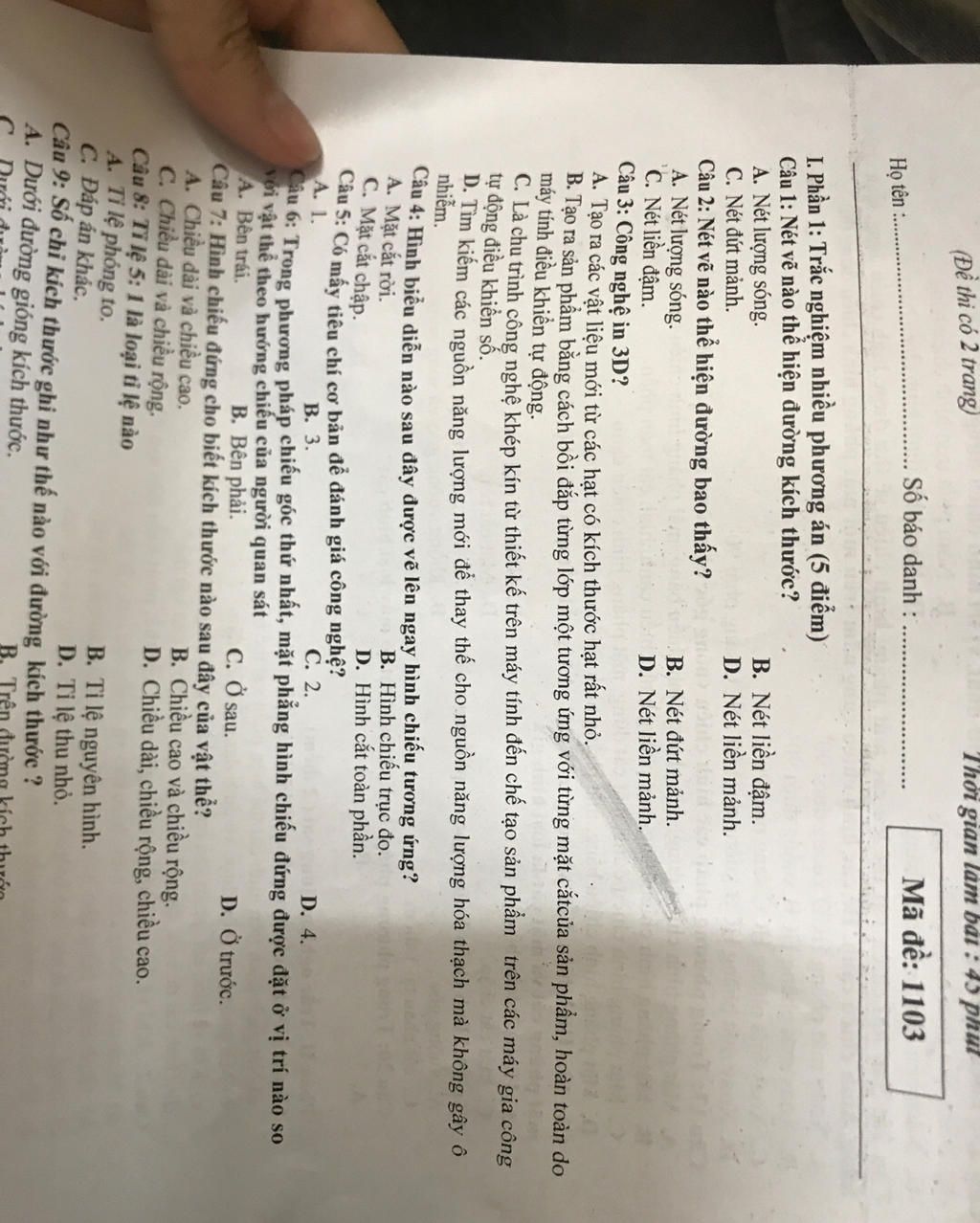 Thời gian làm bài : 45