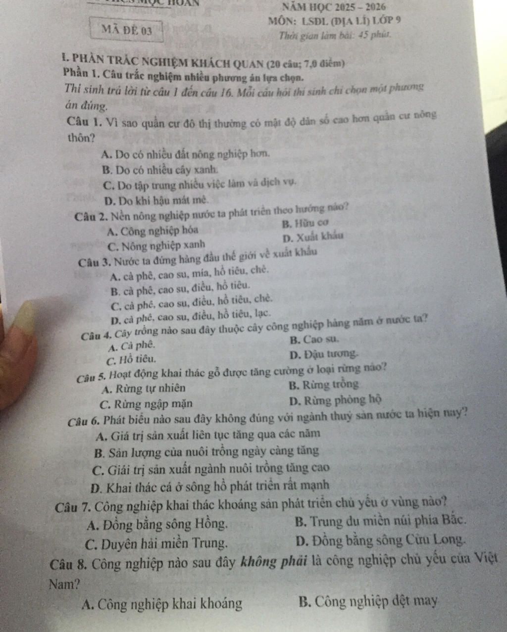 còn câu 8 chưa xem được đps án C và D nên không biết ạ