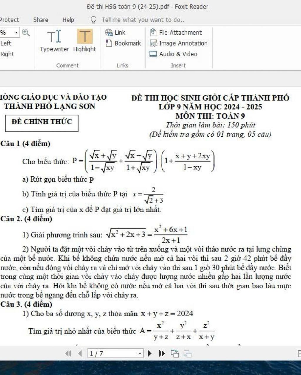 Vậy `P_(max)=1` tại `x=1`