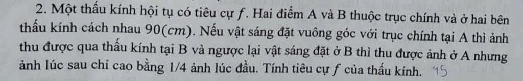 Thay (1) vào (2): $d_1 + 2d_1 = 90 \implies 3d_1 = 90 \implies \mathbf{d_1 = 30 \text{ cm}}$