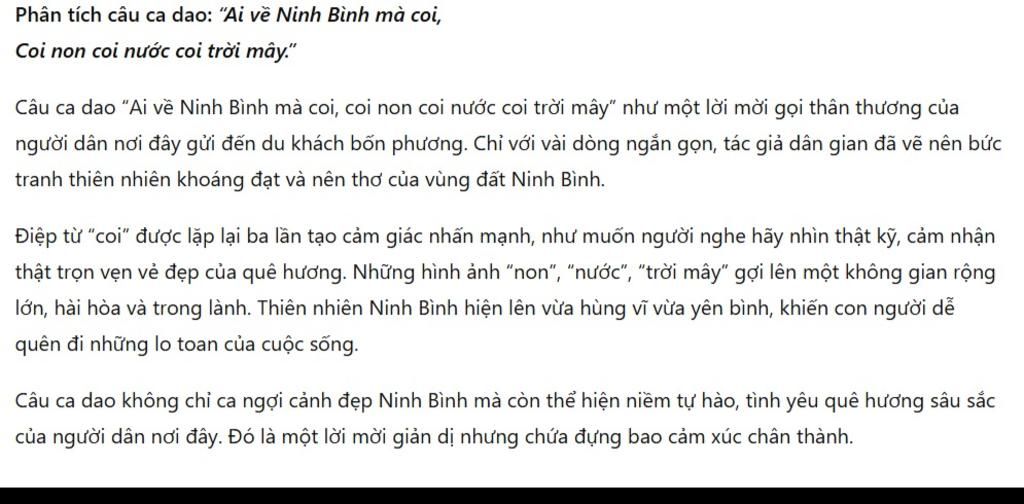 1 số bài văn mẫu phân tích về các câu ca dao tục ngữ ninh bình: