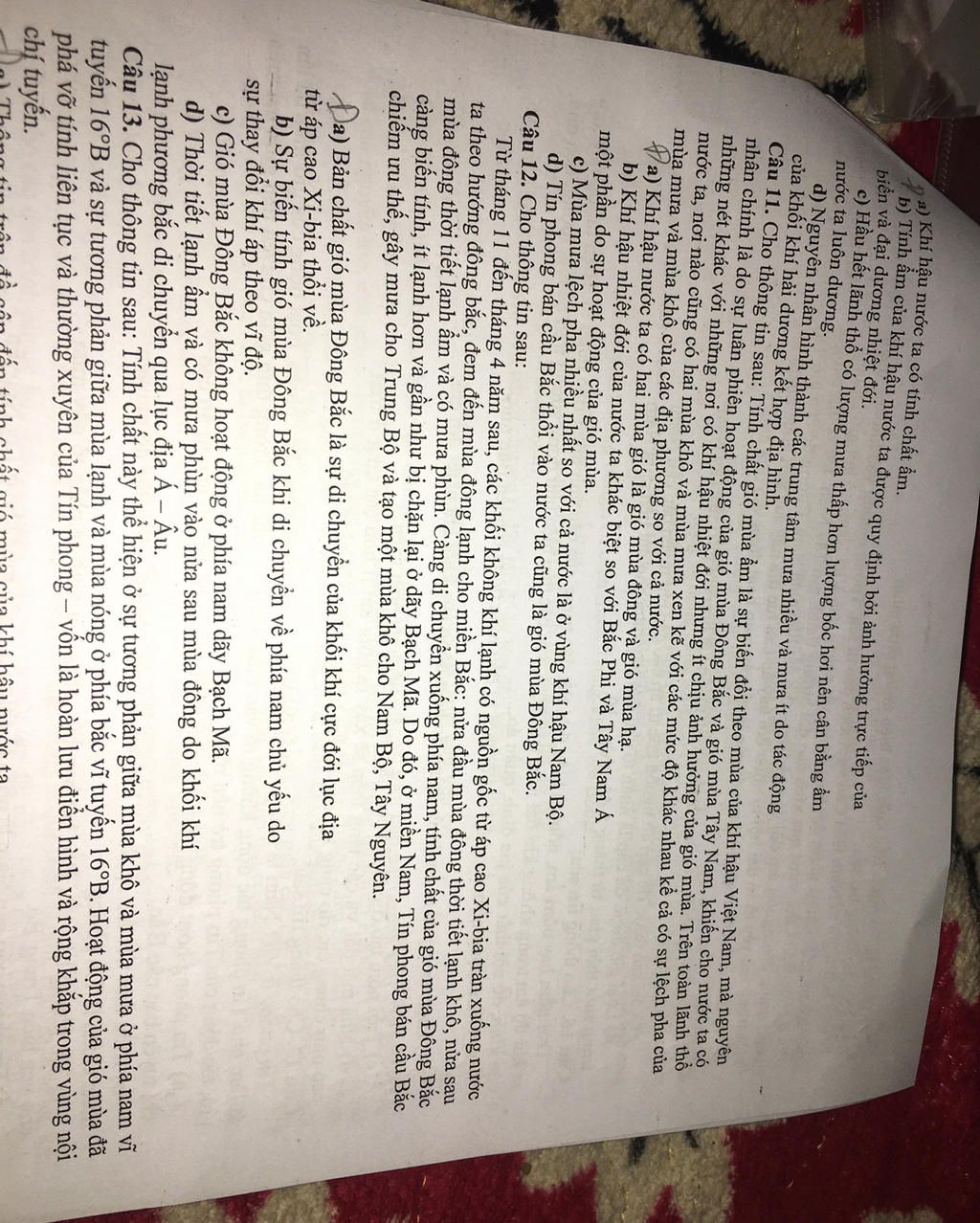 b) Tính ẩm của khí hậu nước ta được quy định bởi ảnh hưởng trực tiếp của
