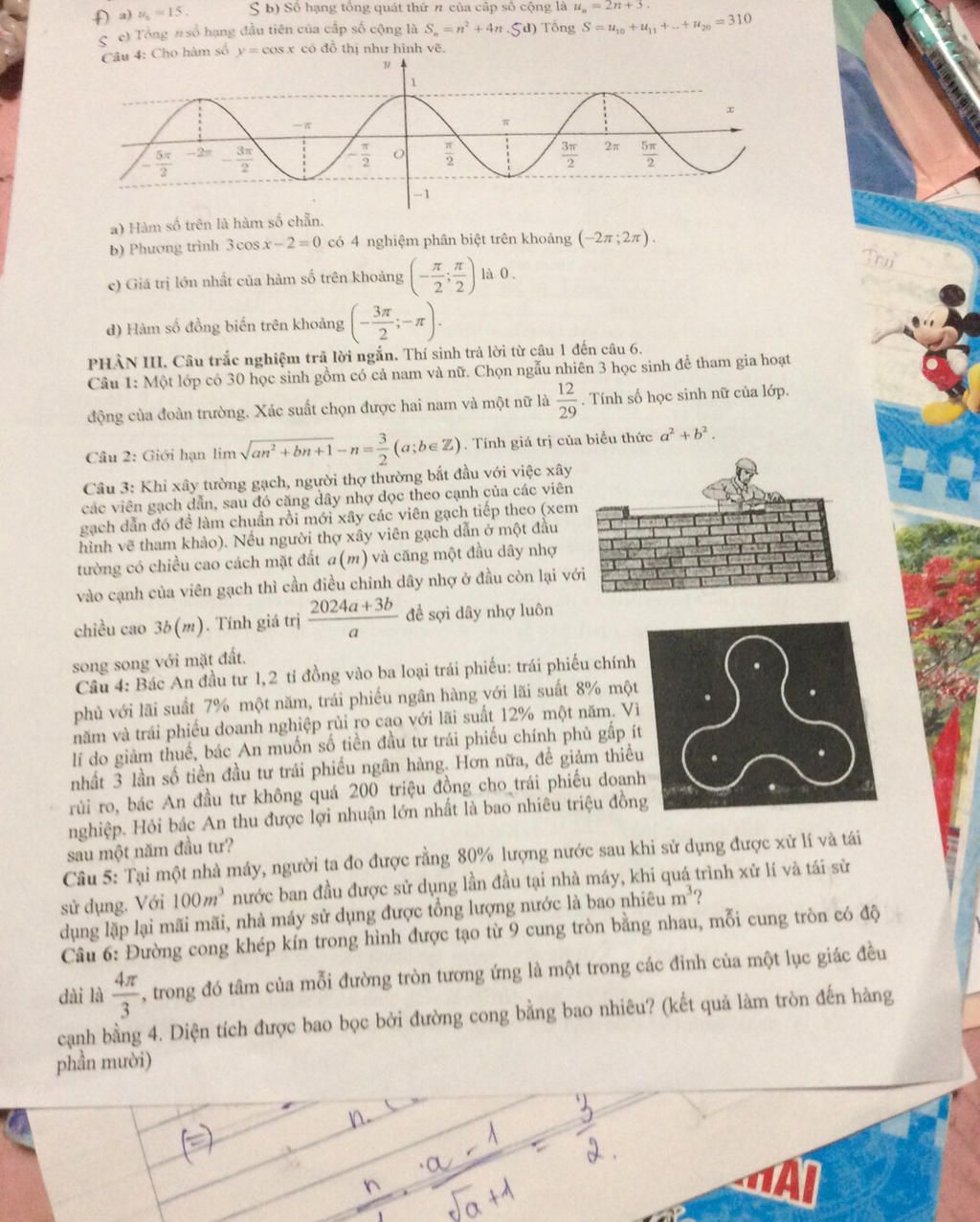 b) Phương trình. 3cosx−2=0 có 4 nghiệm ...