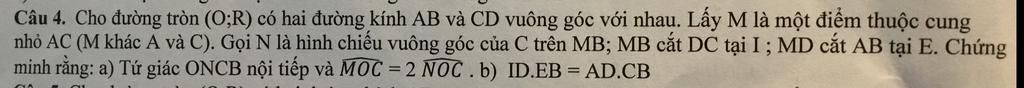 `∠CMB = 1/2 sđ(CB) = 90^0 /2 = 45^0 ⇒ ∠NCM = 90^0-45^0 =45^0`