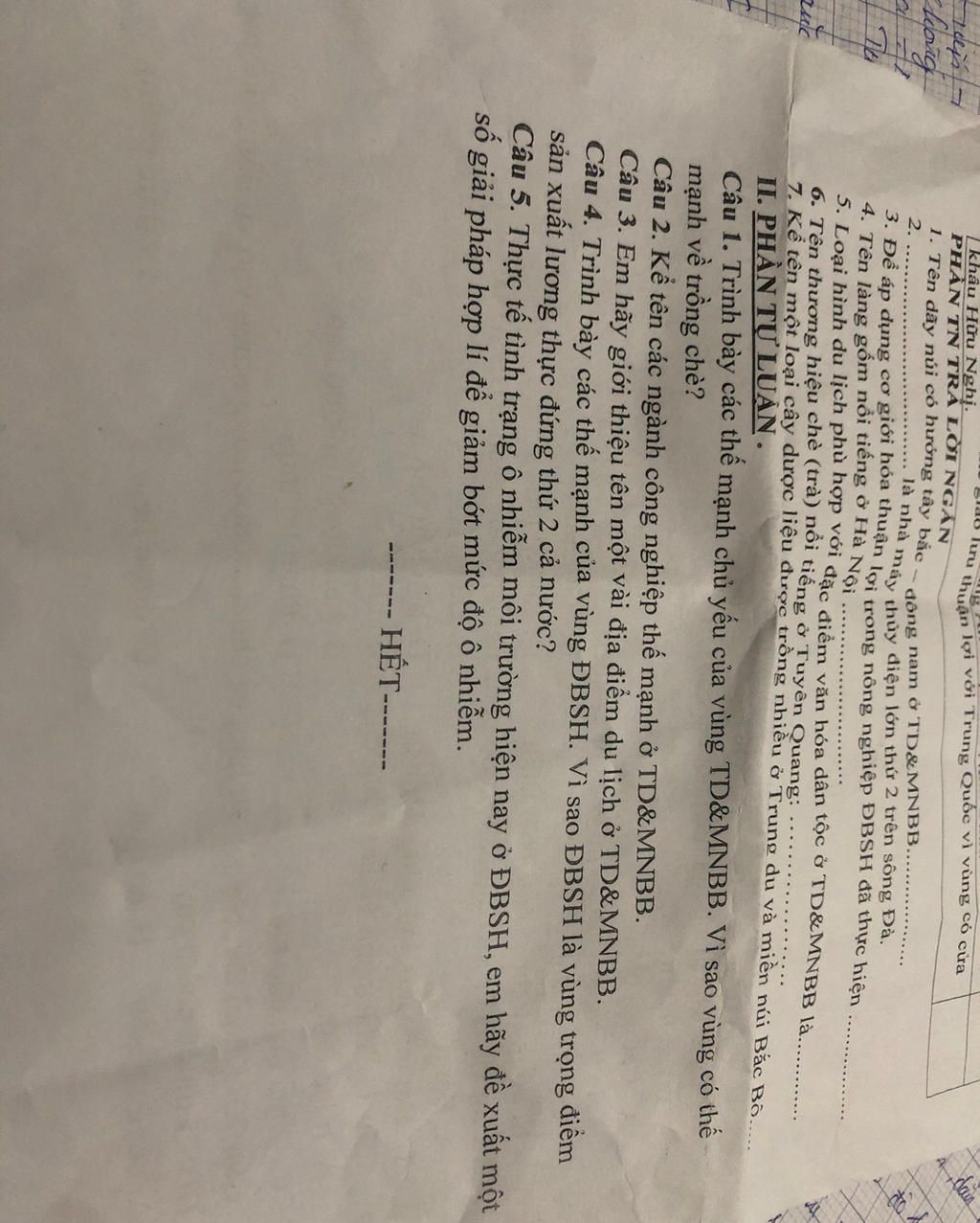 Câu 5: Hiện nay, môi trường ở ĐBSH bị ô nhiễm do rác thải sinh hoạt, nước thải công nghiệp, làng nghề, và khí thải giao thông.