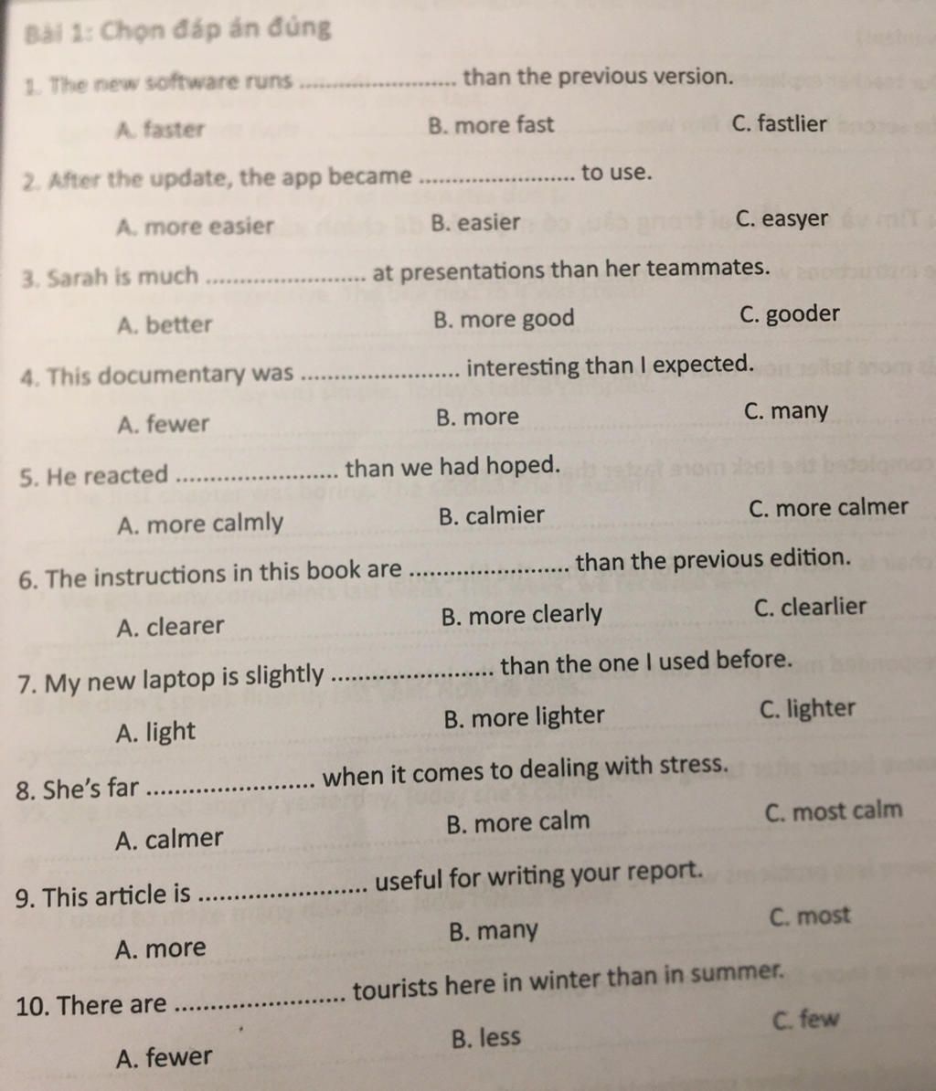 `-` Light `->` so sánh hơn là lighter ( ko dùng more ).