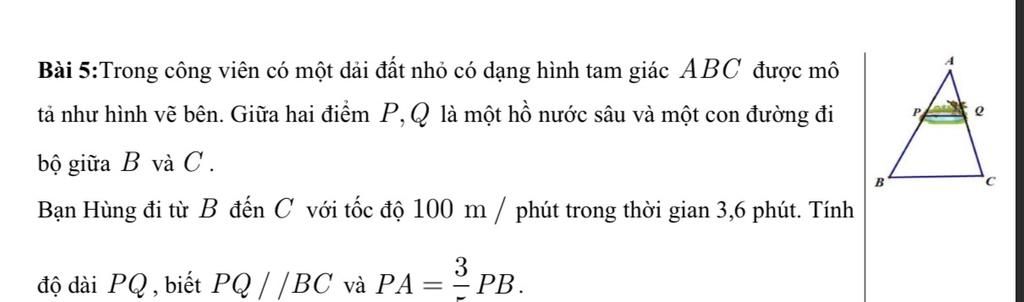 Xét `Delta ABC` có `PQ////BC` nên theo định lý Thalès: