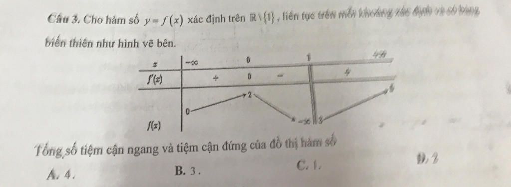 Tổng số tiệm cận ngang và tiệm cận đứng là `3.`