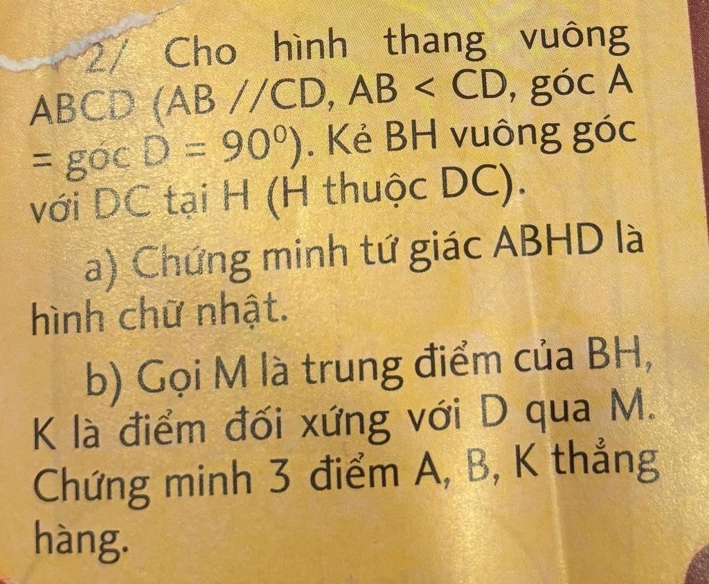 a ) Tứ giác ABHD có:
