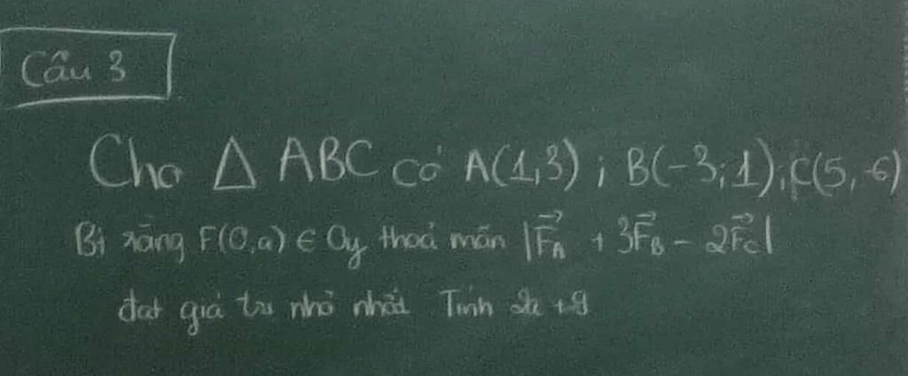 Do đó : `|vec(F_A) + 3vec(F_B) - 2vec(F_C)| = |2vec(F) - vec(D)|` đạt GTNN khi `2vec(F)` bằng hình chiếu của `vec(D)` lên đường `Oy` (vì `F∈ Oy`)
