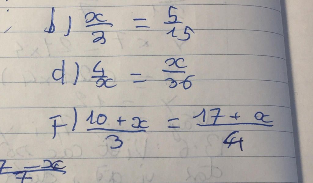 ` b) x/3 = 5/15 `