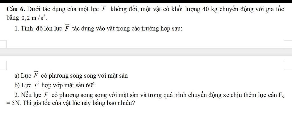 Khi có thêm lực cản và lực $\vec{F}$ song song với mặt sàn ta có hệ thức: